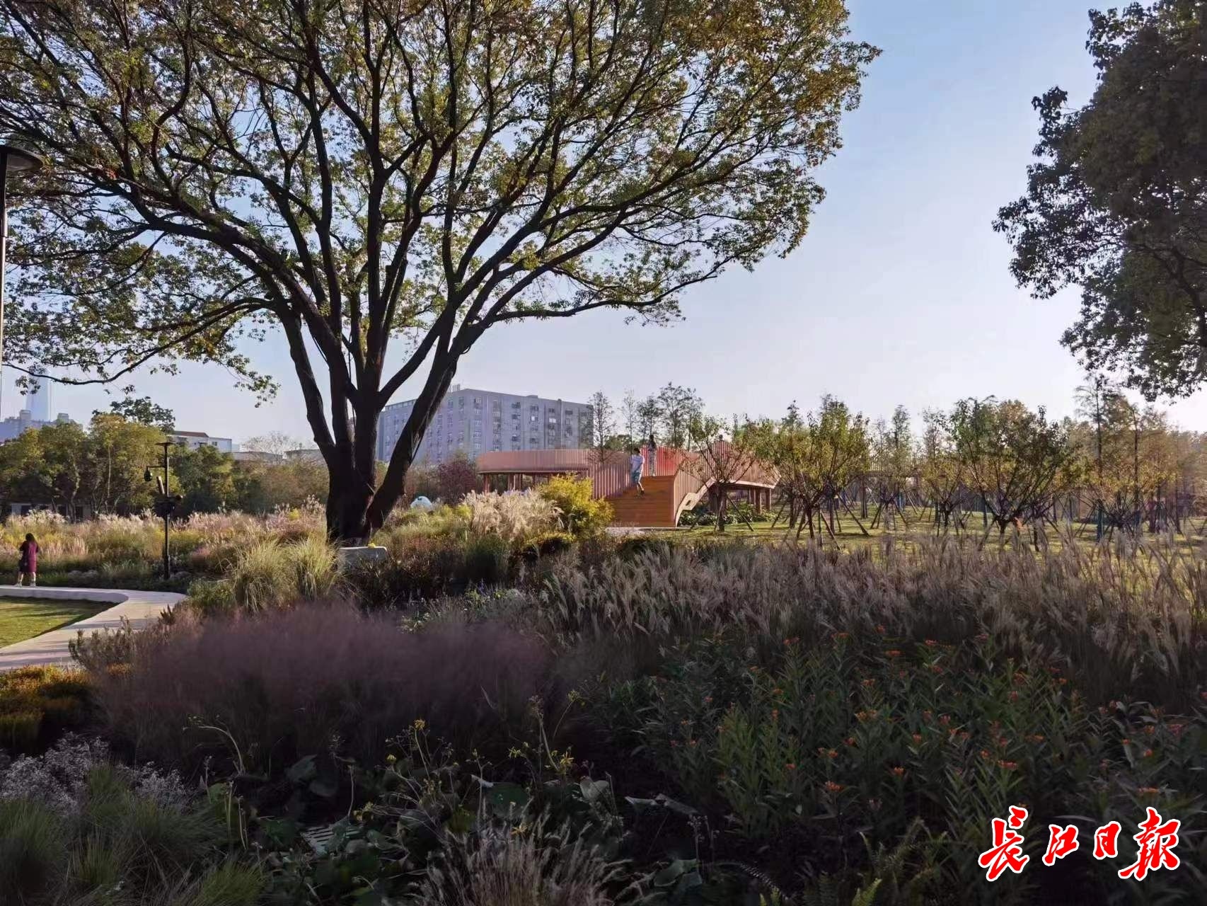 长江日报大武汉客户端10月27日讯 阵阵秋风吹来迷人秋景。近日,在江汉区常青公园,如画的迷人景色吸引了市民前来秋游赏景。他们亲近自然,徜徉在武汉首家5G主题公园内拍照留念,采撷着由大自然馈赠和人工建管绿化品质提升带来的惬意和快乐,尽享深秋里的无穷乐趣。(长江日报记者乔驰 通讯员李政摄影报道)