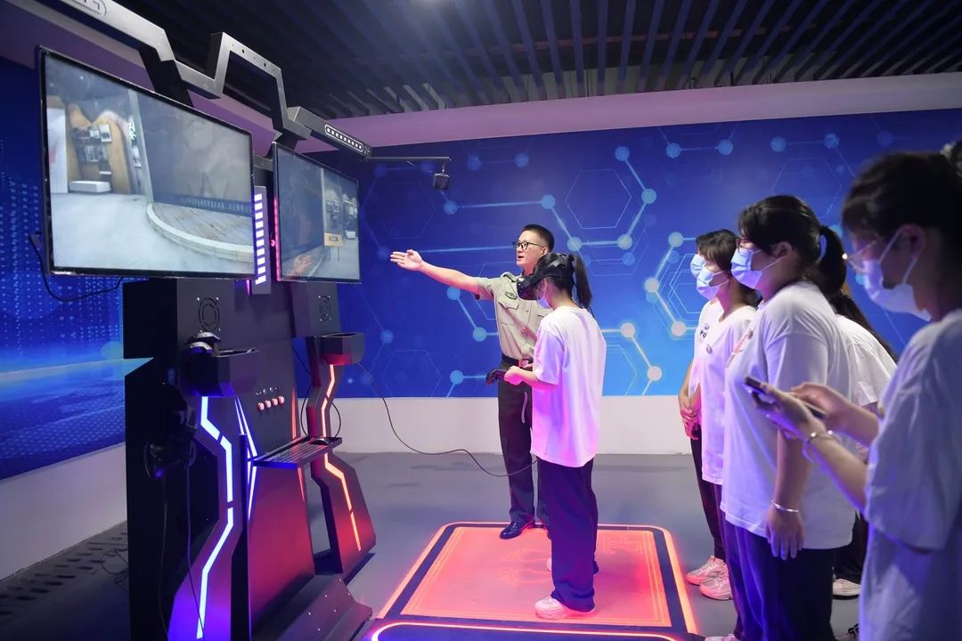 VR互动体验区的同学们在退役大学生士兵的指导下开展活动