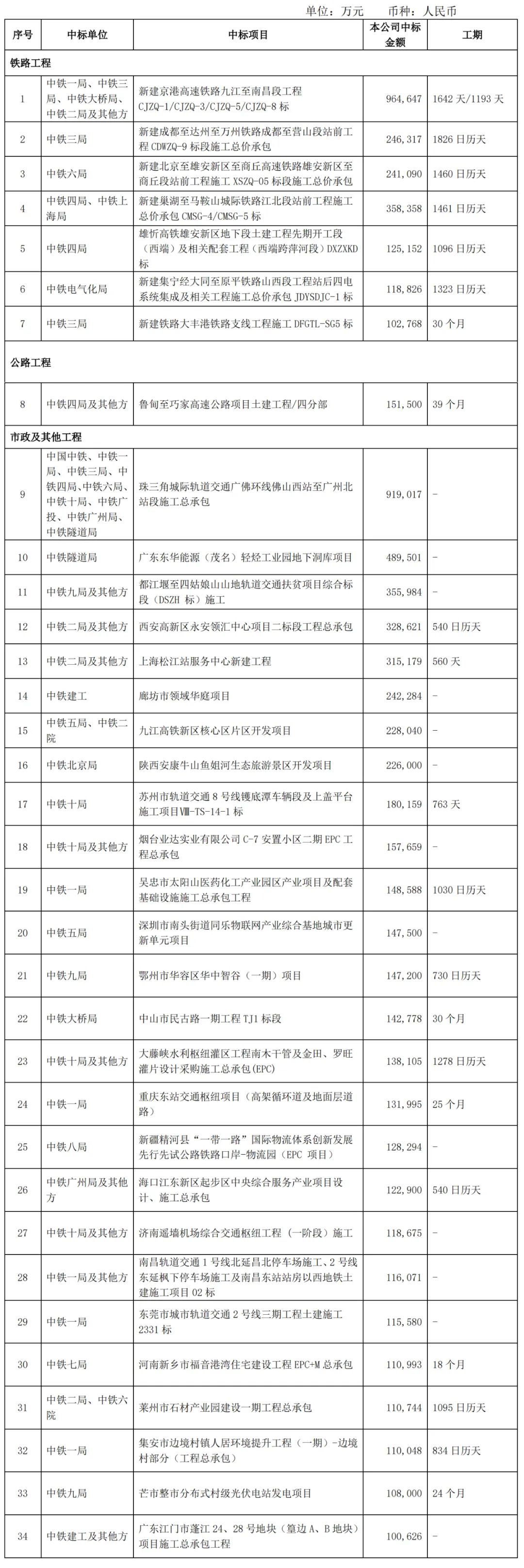 日前,中国中铁发布公告(编号:临2022-046),公司于近期中标多个重大工程,中标价合计约人民币7,749,199万元,约占本公司中国会计准则下2021年营业收入的7.24%。