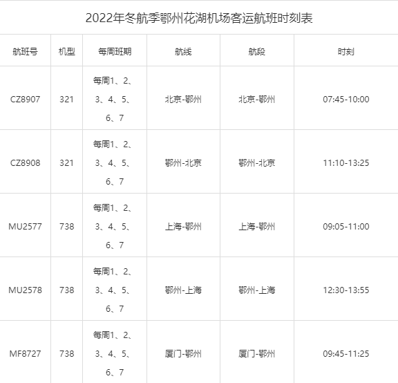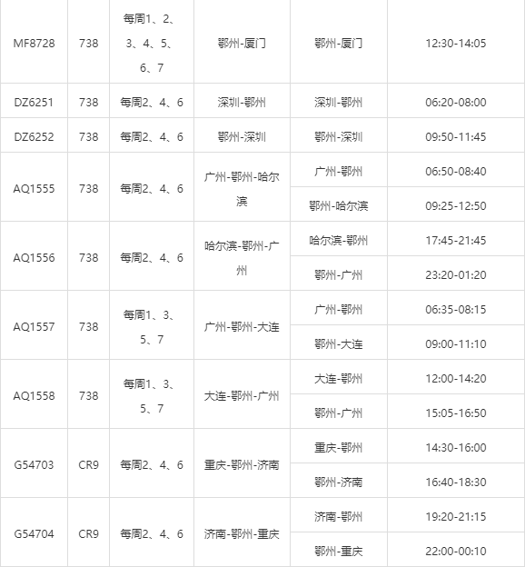 【服务】花湖机场最新航班时刻表