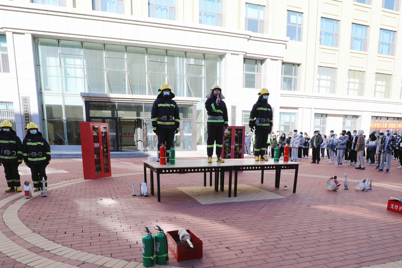 保卫处陈寿燚和松北区消防救援大队同志共同为师生讲解灭火器、消火栓及其微型消防站等消防器材的使用方法。