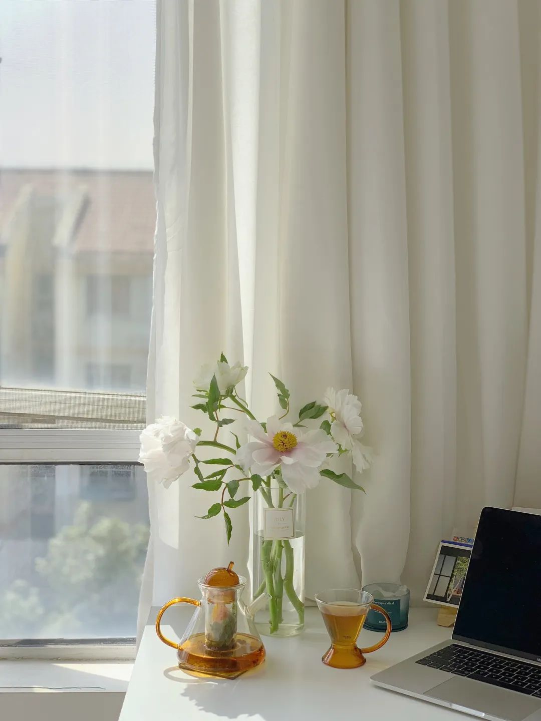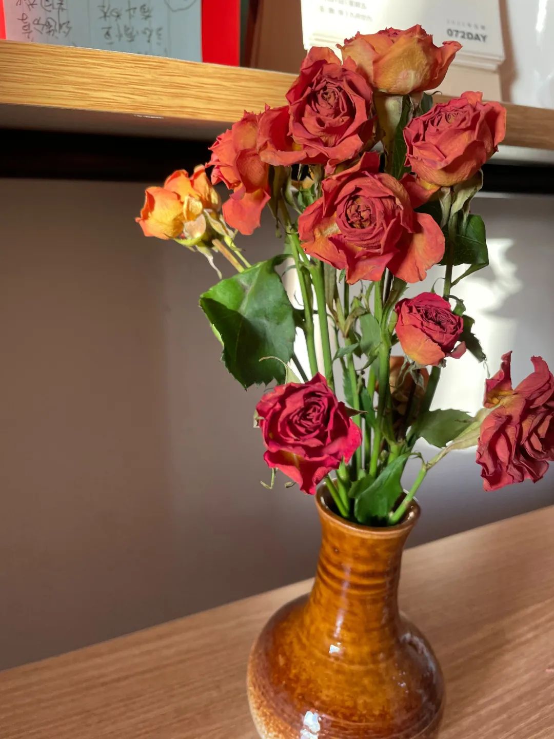 “早上七点醒来,窗外阳光正好,我把多头玫瑰干花放在阳光里,给它拍了几张照片。果然花儿治愈人心。我还在慢慢接纳我和他不能再见面的事实。这留下的落寞,随着时光会慢慢消散的。爱阳光和花儿和爱自己,永远不会落寞。”