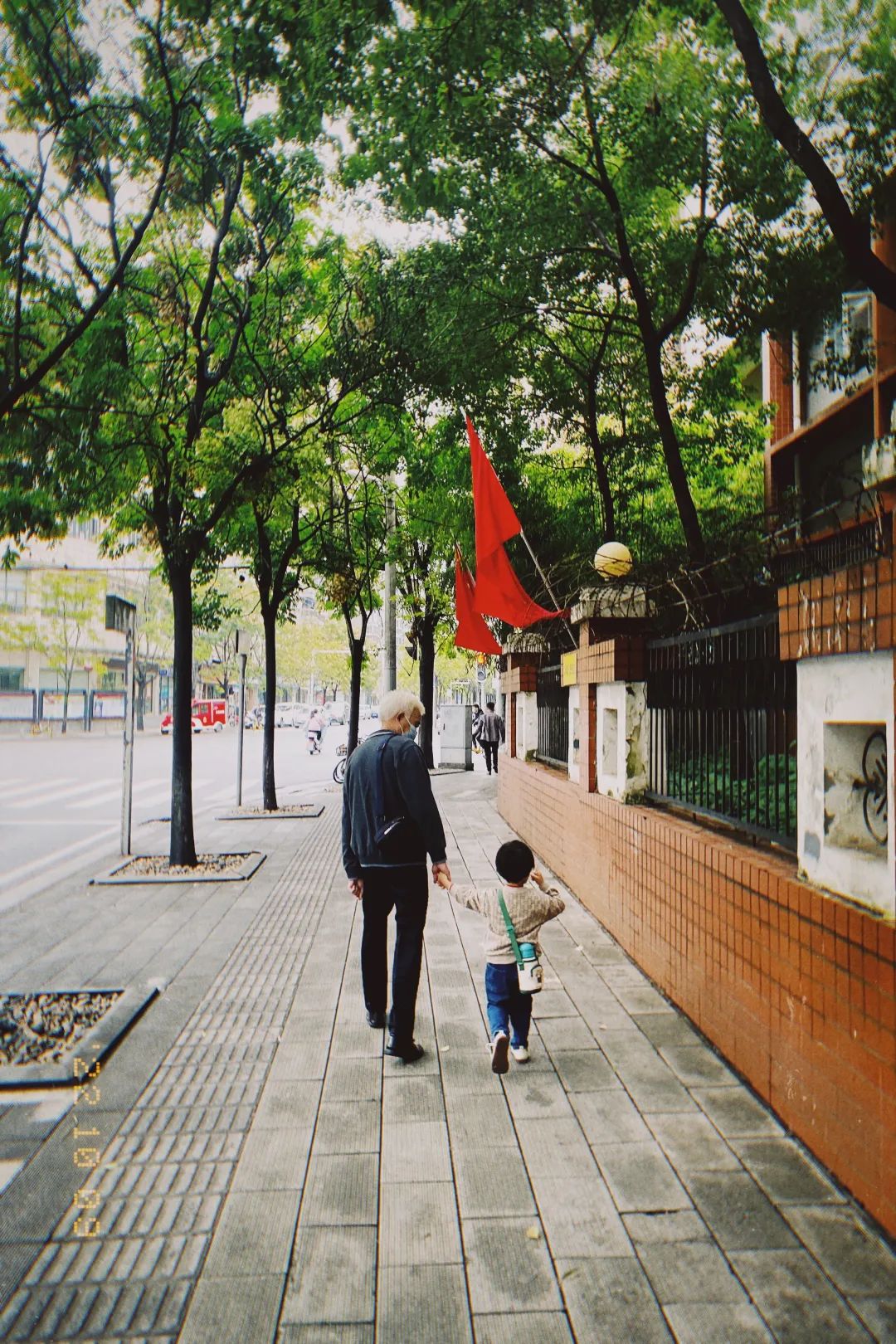 “早晨去公司的途中碰到正准备送小朋友上学的老爷爷,觉得很有爱~”