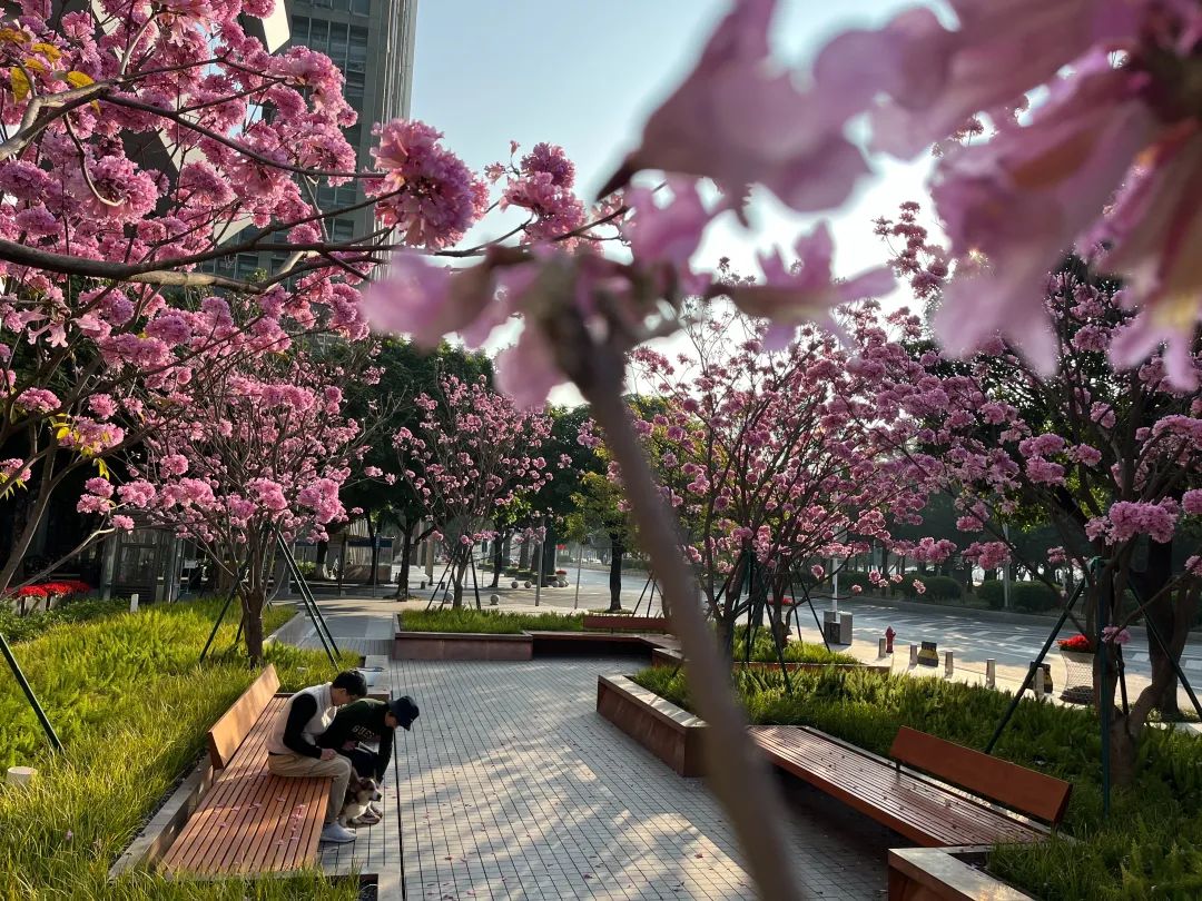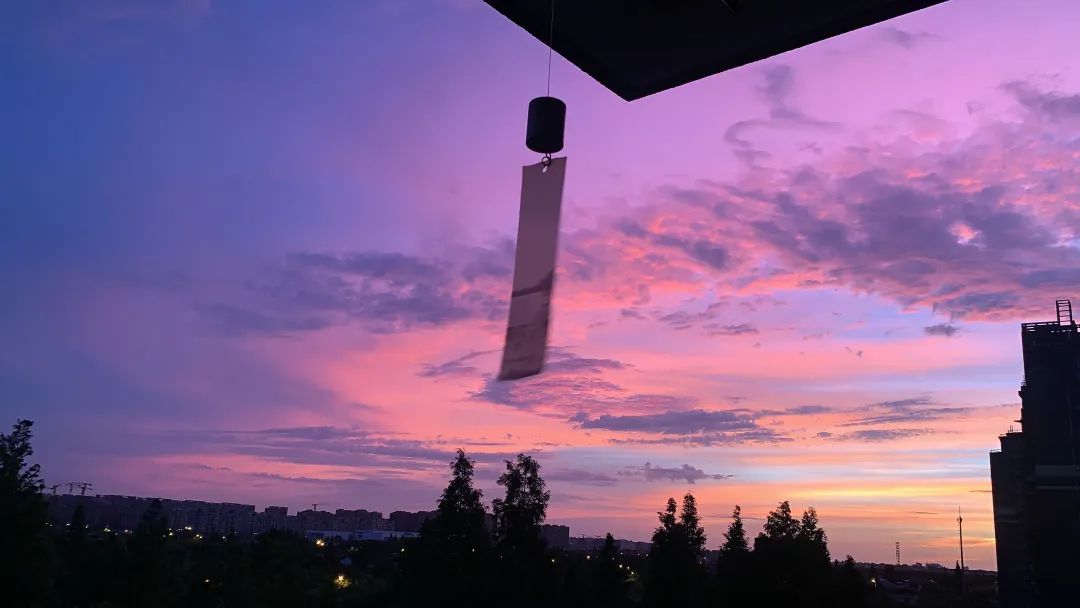 “是夏天的某个早晨,偶然在四五点钟的时候爬起来喝水,迷迷糊糊看到外面一片粉紫色,飞奔到阳台整个人都清醒了。”