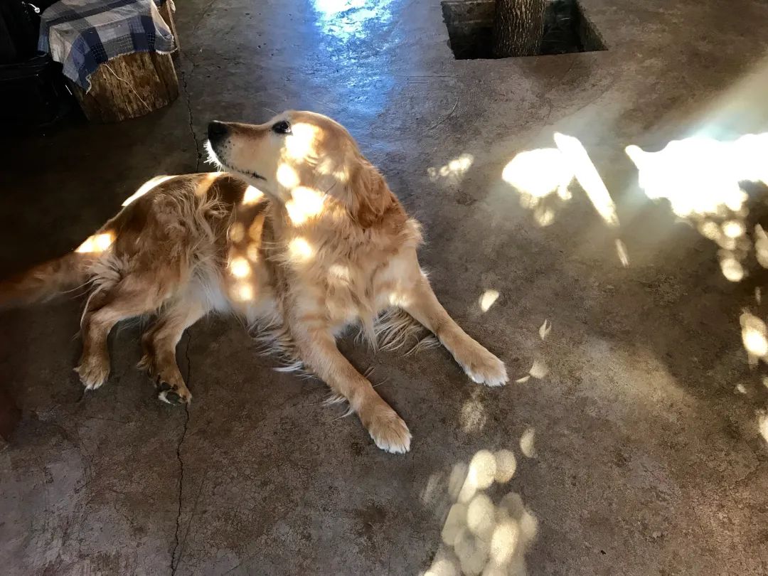 “2022年新年期间,两人一狗晨起闲遛,旁边一位爱拍照的小姐姐帮忙拍了张全家福。”