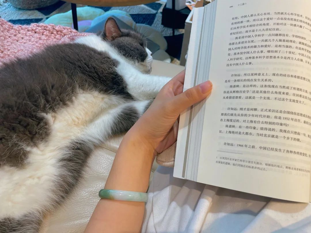 “周末早起去练车,结果教练临时有事取消了,于是坐沙发上翻书。养了5年的猫跳到身边来睡觉。那一刻,感觉到久违的内心平静。”