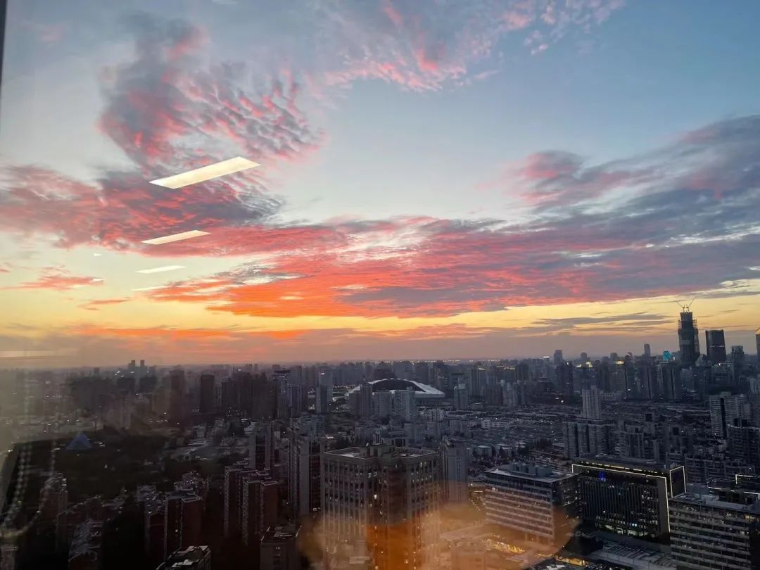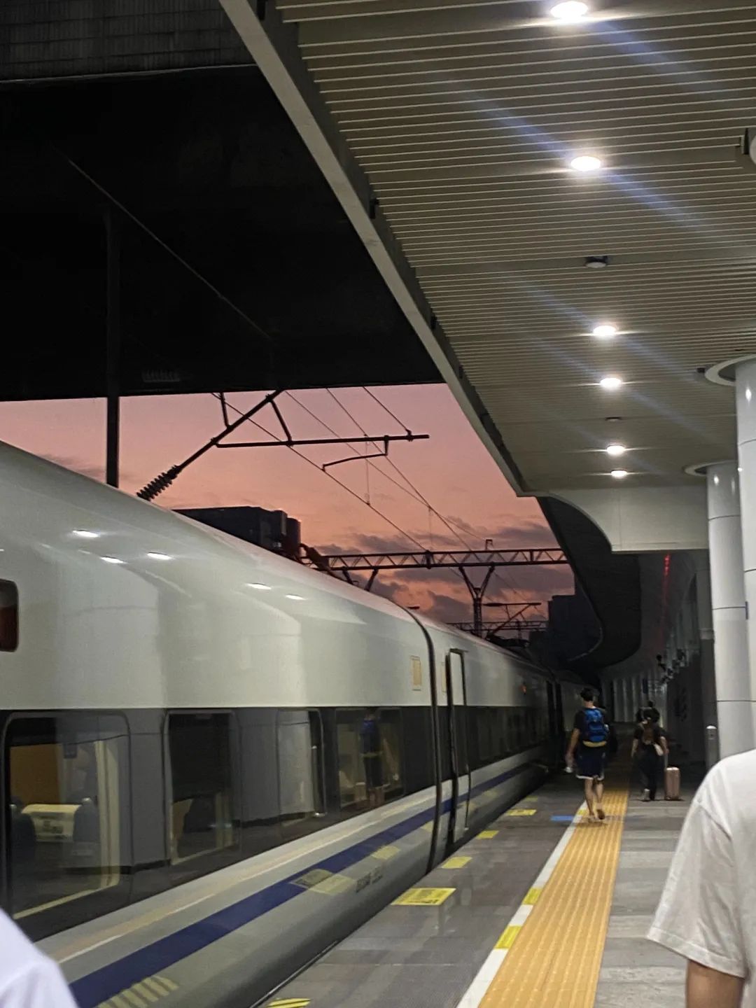 “十月的第一天和男朋友一起踏上了回家的路。早上五点多出门的时候天还是黑的,紧赶慢赶快上高铁的那一刻,抬头就看见霞光。平时上班的早晨都是匆匆忙忙,无暇感受这个世界的美好,只有这个时候才能停下来体会。”