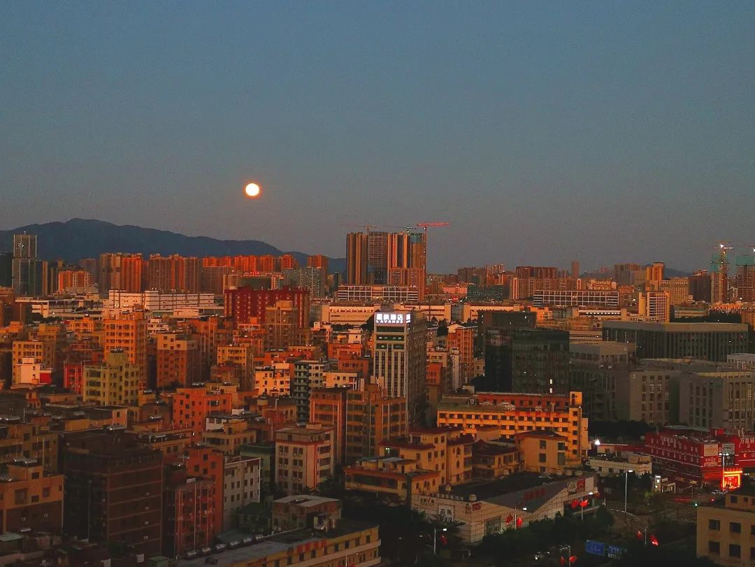 “开门通风不经意间看了一眼走廊尽头的窗外,谁能想到见到的是清晨6点钟的月亮。”