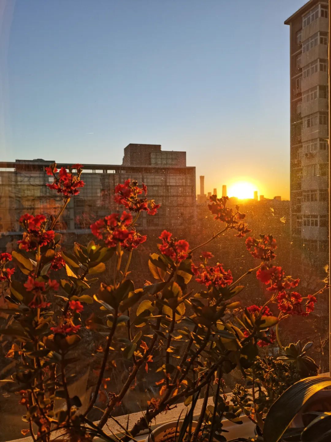 “7月盛夏,裸辞半个月后,某晚失眠到凌晨5点,一张在家拍到的日出。之后马路从宁静开始有了人、车、鸟的声音。那一刻的感觉有点不好形容,似乎是离开了原本的生活节奏,还没找到新的节奏,但每个人的生活都随着早晨太阳的升起继续开始。贯穿整夜的失眠在迎来早晨的时候,原来是真的没有昼夜之分的感觉。”