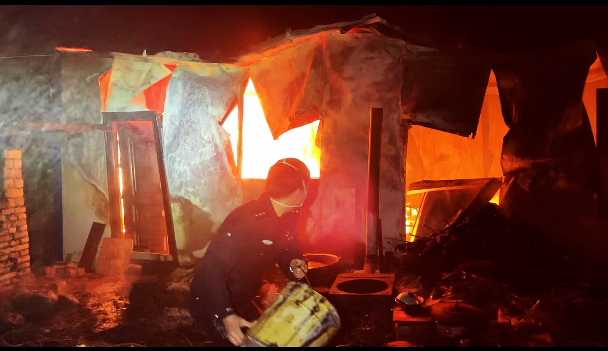 10月25日21时10分,轮台县公安局哈尔巴克派出所接到辖区居民段某求助,称自家房子失火,请求民警帮助,接警后民警迅速赶往事发地。