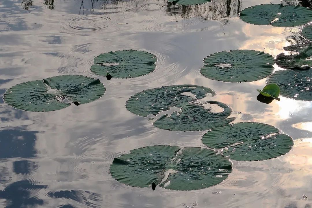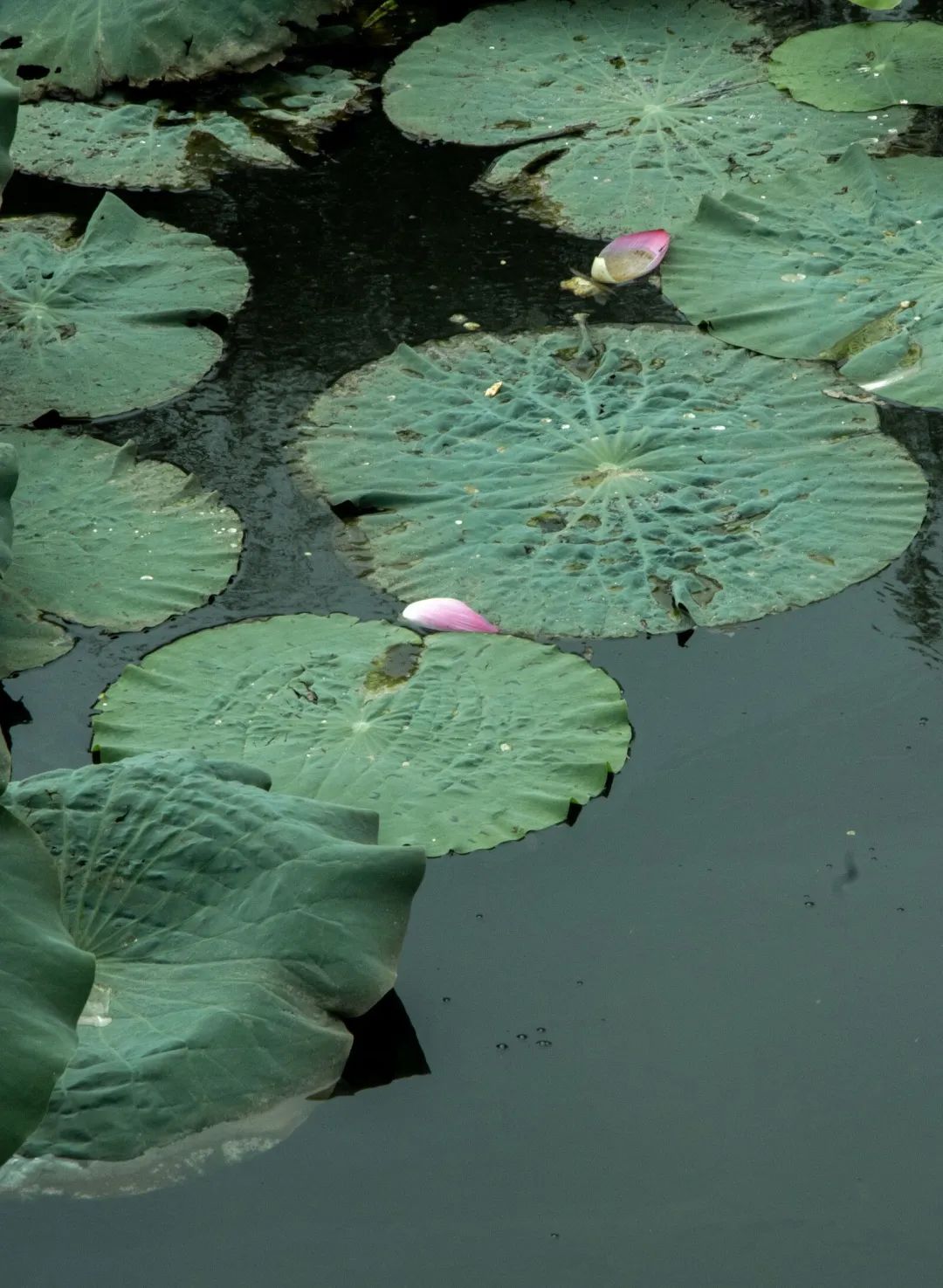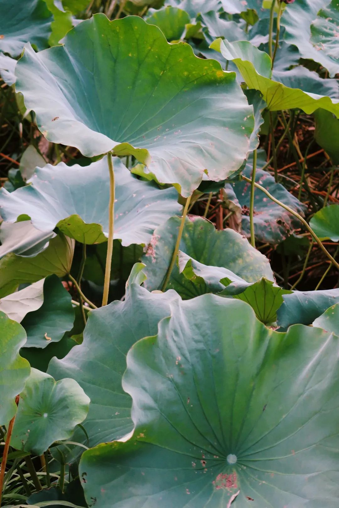 秋荷亲吻水面的身姿和微微泛黄的裙摆