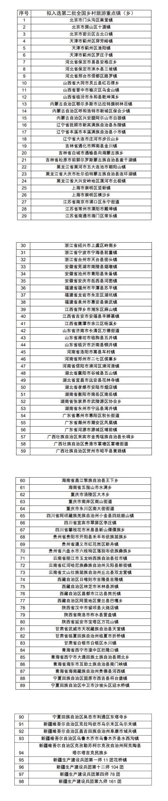 中国经济网北京10月28日讯(记者 魏金金)27日,文化和旅游部官网公示了第四批全国乡村旅游重点村名单和第二批全国乡村旅游重点镇(乡)名单。据悉,第四批全国乡村旅游重点村拟定名单涉及200个重点村,第二批全国乡村旅游重点镇(乡)拟定名单涉及98个重点乡镇,公示期5日。
