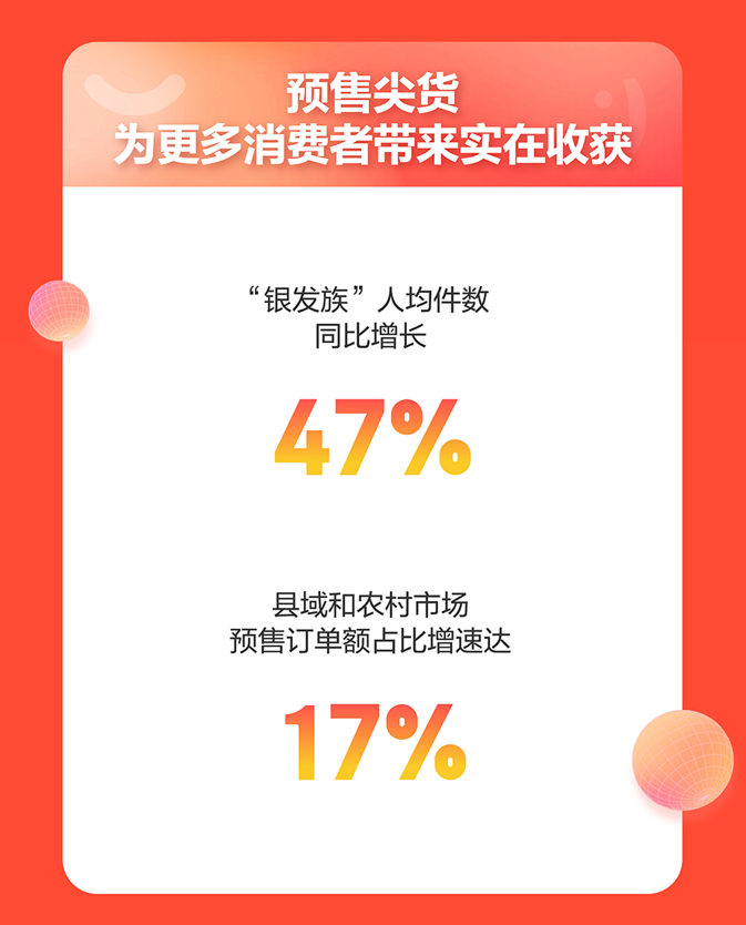 10月20日晚8点,京东11.11预售正式开启。10月28日,据京东发布的数据显示,今年“00后”消费人均件数同比增长19%,“银发族”消费人均件数同比增长47%;下沉市场展现出蓬勃活力,县域和农村市场预售订单额占比增长17% 。