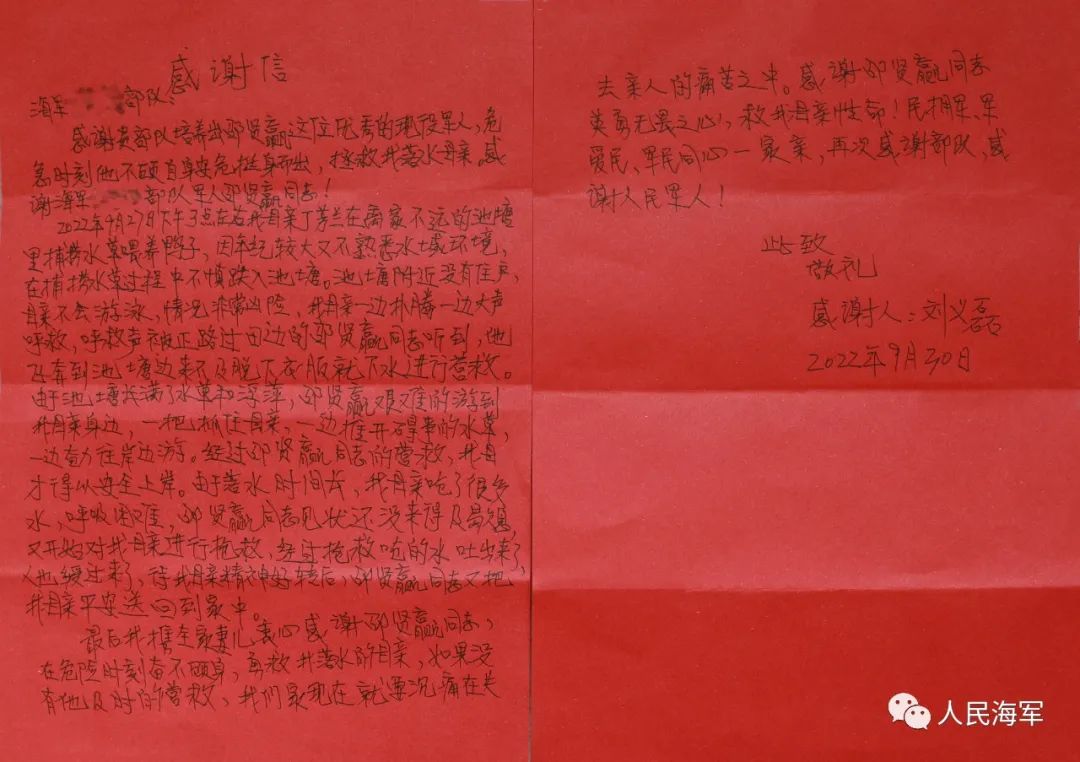 丁芳兰儿子给邵贤赢所在单位写的感谢信