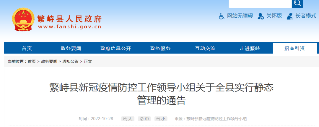 全县实施静默管理
