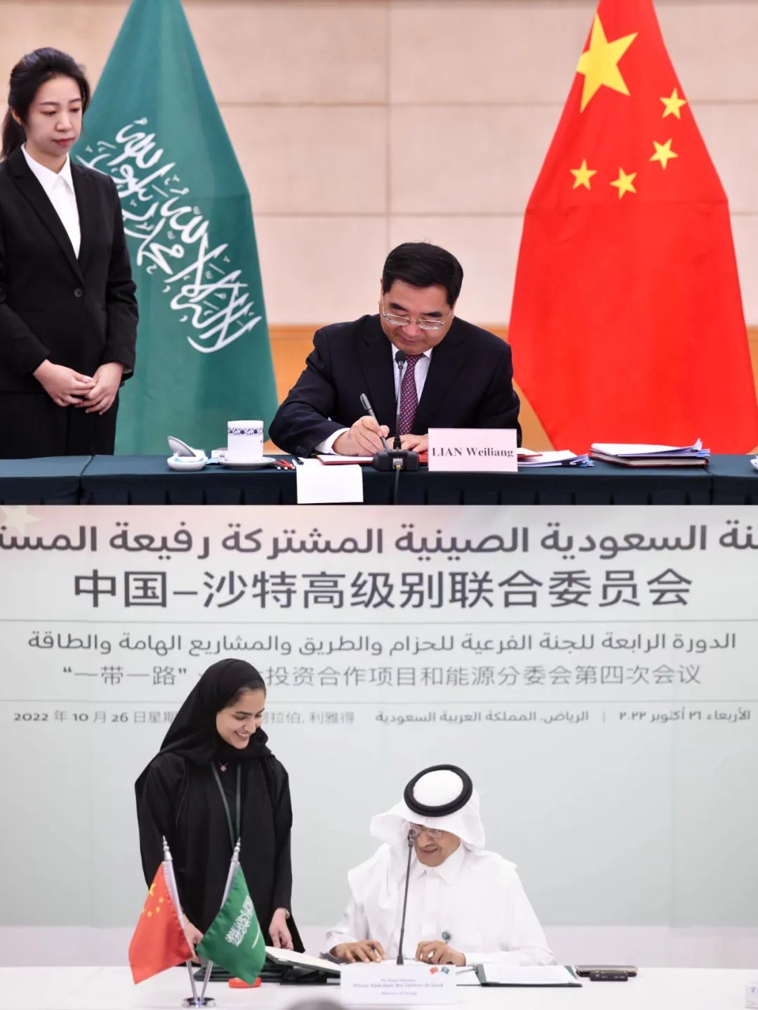 2022年10月26日,国家发展改革委副主任连维良与沙特能源大臣阿卜杜勒阿齐兹亲王以视频方式共同主持召开中国-沙特高级别联合委员会“一带一路”、重大投资合作项目和能源分委会第四次会议。双方就共建“一带一路”倡议与“2030愿景”对接、能源合作、重大投资合作项目、“数字丝绸之路”等议题全面深入交换意见,达成广泛共识。会后,双方签署了会议纪要。