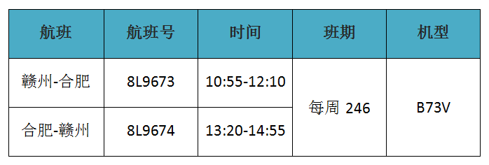 祥鹏航空开通赣州=合肥航线,每周二周四周六执飞: