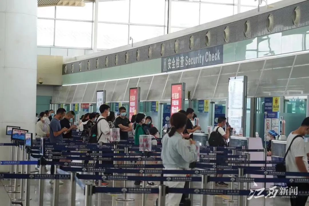 ▲旅客正在南昌昌北国际机场进行安全检查。(江西省机场集团有限公司供图)