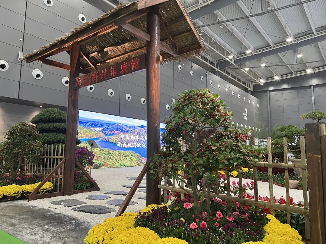 看!这个展区设置得别具一格,花团锦簇、五颜六色,一股清新的气息扑面而来。没错,这就是花花要带大家参观的雨花乡村振兴展区。