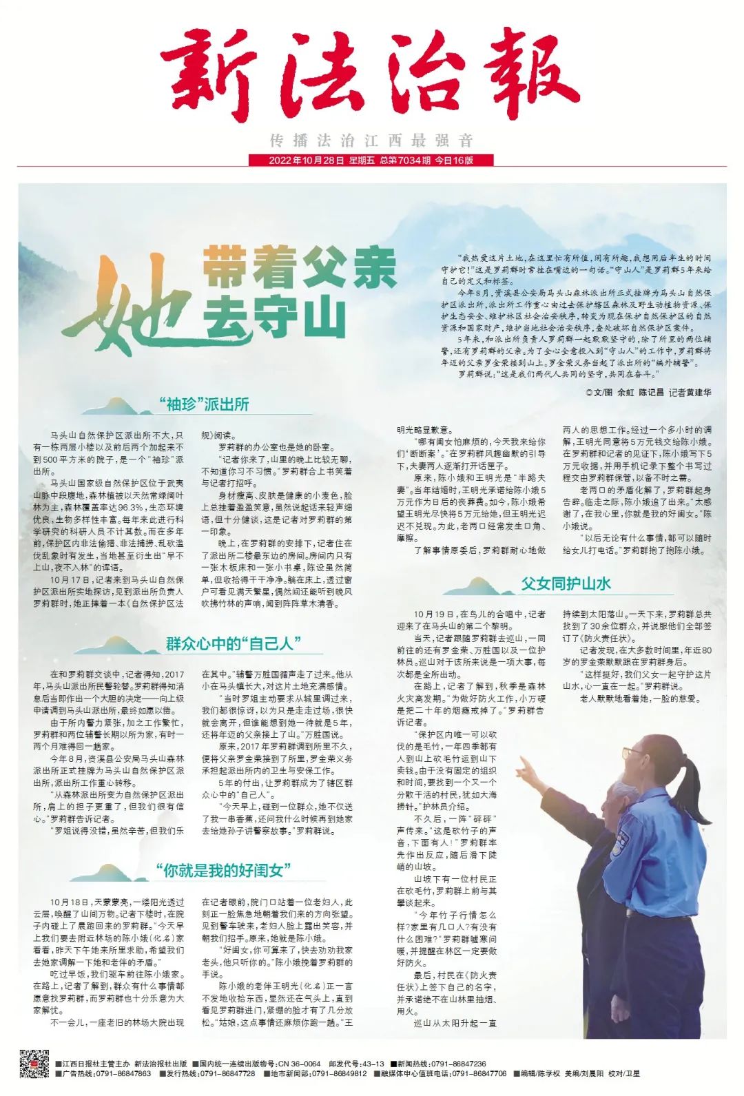5年来,和派出所负责人罗莉群一起默默坚守的,除了所里的两位辅警,还有罗莉群的父亲。为了全心全意投入到“守山人”的工作中,罗莉群将年迈的父亲罗金荣接到山上。罗金荣老人义务当起了派出所的“编外辅警”。
