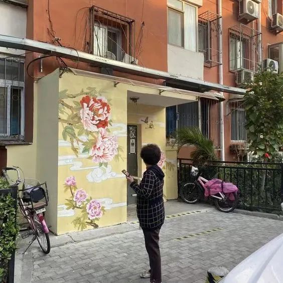 近日,花园路街道牡丹园社区以牡丹园东里小区的两个单元为示范点,在楼门墙面绘制大幅牡丹手绘,打造全新特色楼门文化,创建文明和谐社区。墙绘以藤黄为背景色,用蓝色和粉色作为主题色绘制牡丹,钛白曙红均匀勾勒,花瓣自然错落,有的含苞未放、有的已然盛开,与周围绿植相映成趣。这是继牡丹园东里小区物业统一后,老旧小区的又一个新变化,朵朵牡丹姿态优雅、富丽端庄,居民纷纷驻足观看,赞不绝口。