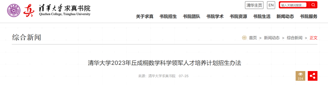 为全面贯彻落实党的教育方针,落实立德树人根本任务,加强对于数学科学人才培养工作,充分发挥学术大师育人作用。清华大学今年继续开展丘成桐数学科学领军人才培养计划(以下简称“数学领军计划”)选拔培养。面向全球招收中学阶段综合优秀且具有突出数学潜质及特长的学生进行选拔及培养,从本科连续培养至博士研究生阶段,致力于在中国本土培养一批具备扎实的数理基础,并能够引领中国乃至世界基础数学及其相关应用领域发展的领军人才。