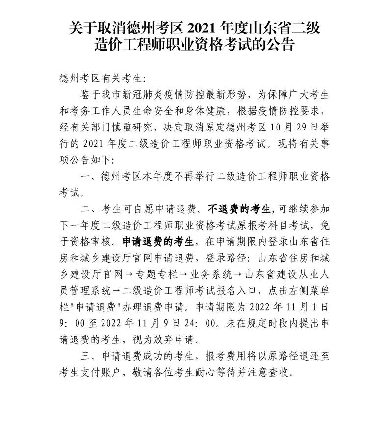 鉴于疫情防控最新形势,为保障广大考生及考试工作人员的健康安全,根据疫情防控有关要求,推迟全市2022年下半年全国中小学教师资格考试(笔试),与2023年上半年中小学教师资格考试(笔试)合并组织实施。推迟考试的德州考区考生报名费将按原缴费渠道全额退回,已通过的笔试科目成绩有效期自动延长半年。