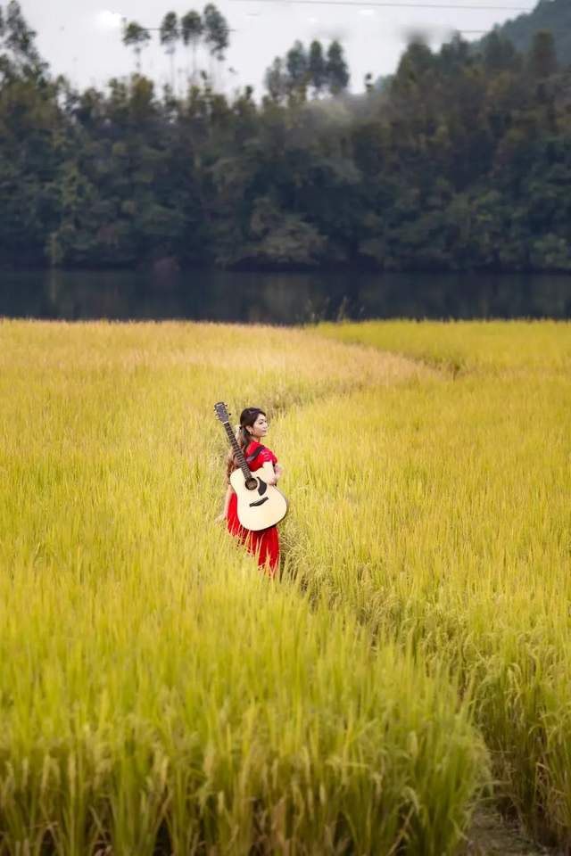 漫步在稻田中