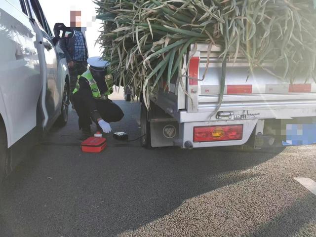 近日,吉林省公安厅高速公路公安局敦化分局巡逻五大队民警巡逻至松长高速5公里加800米处时,发现一辆满载大葱的小型普通货车停在应急行车道内。民警见状立即在车后方做好安全防护并上前查看。