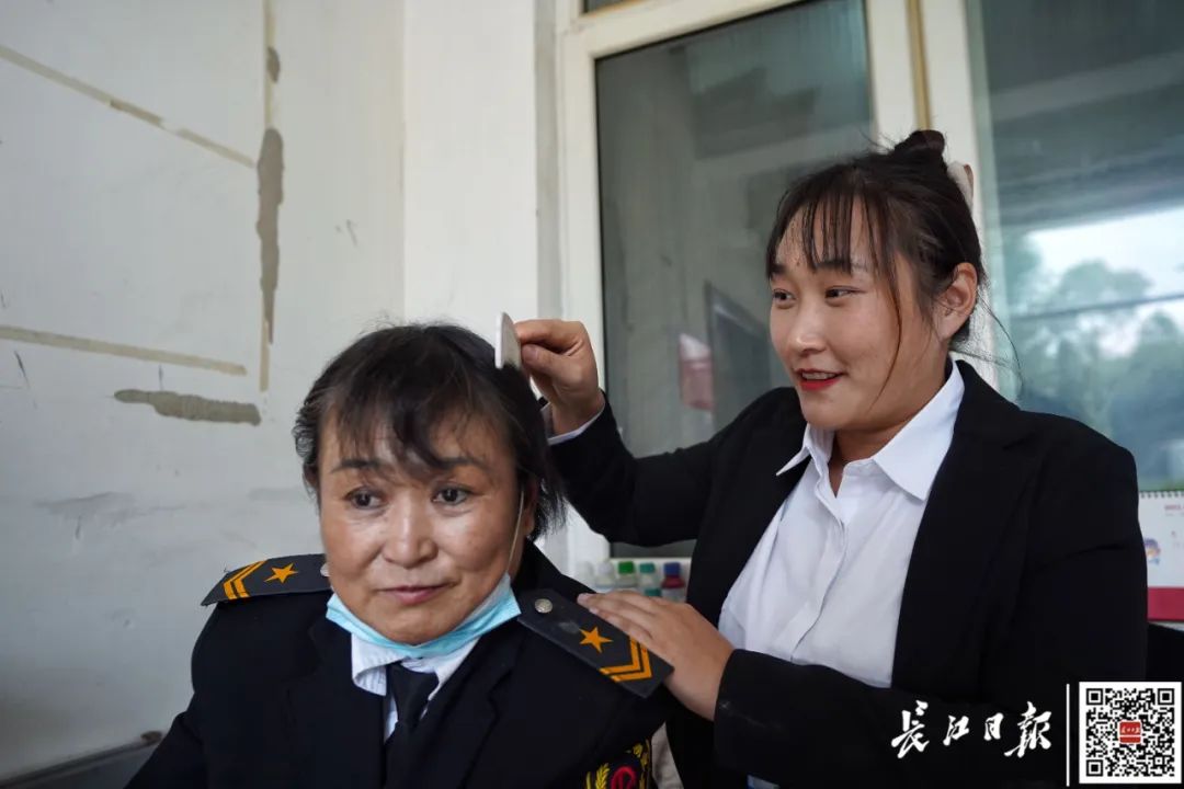 中午休息的时候贾鑫给妈妈梳头按摩。记者肖僖 摄