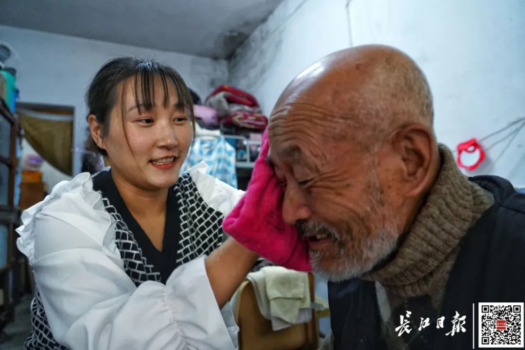 由于妈妈手脚不灵便,根本扶不起外公,身高170厘米的贾鑫把帮外公洗澡的任务也承担下来。在王铁梅眼中,女儿有爱心,照顾外公无微不至。