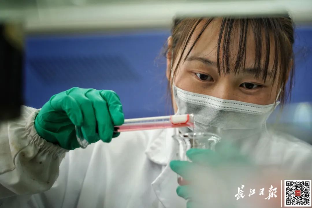 贾鑫在武汉工程大学材料科学与工程学院实验室做实验。记者肖僖 摄