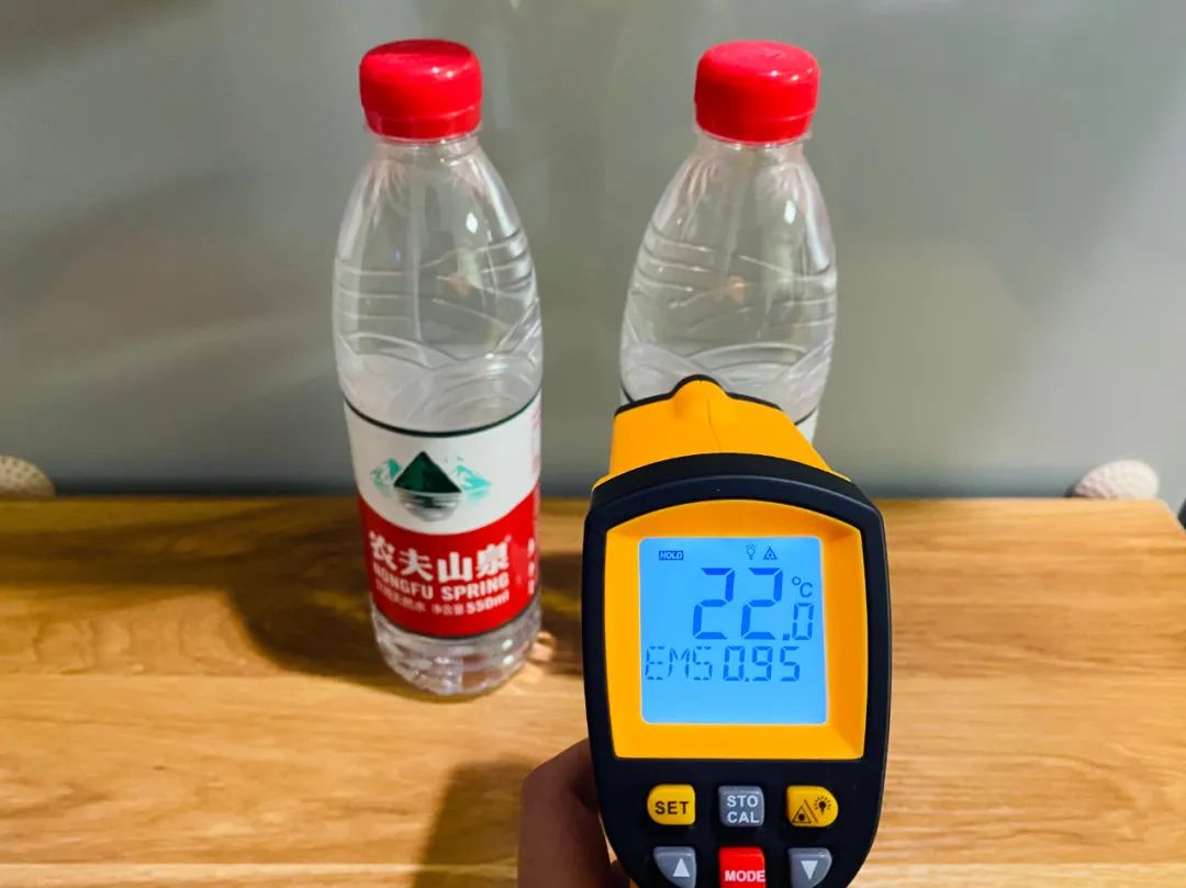 这样还不够?再来看一组测试:准备两瓶同温22℃左右的水。