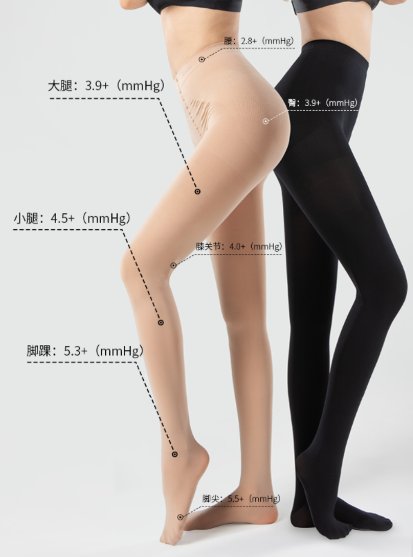 而laseta打底袜从脚踝到腹部,根据人体脂肪的可流动性,采用七段微压设计从下到上层层递减。