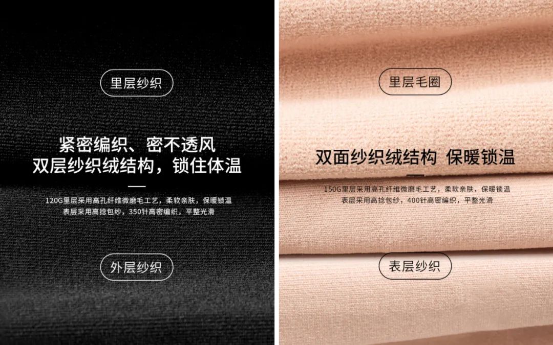 问了品牌方才知道,它内含远红外线纤维。这是一种保温材料,能将吸收的光能和自身产生的能量,通过远红外线转化成热能,再释放给肌肤打造成一个自发热系统。