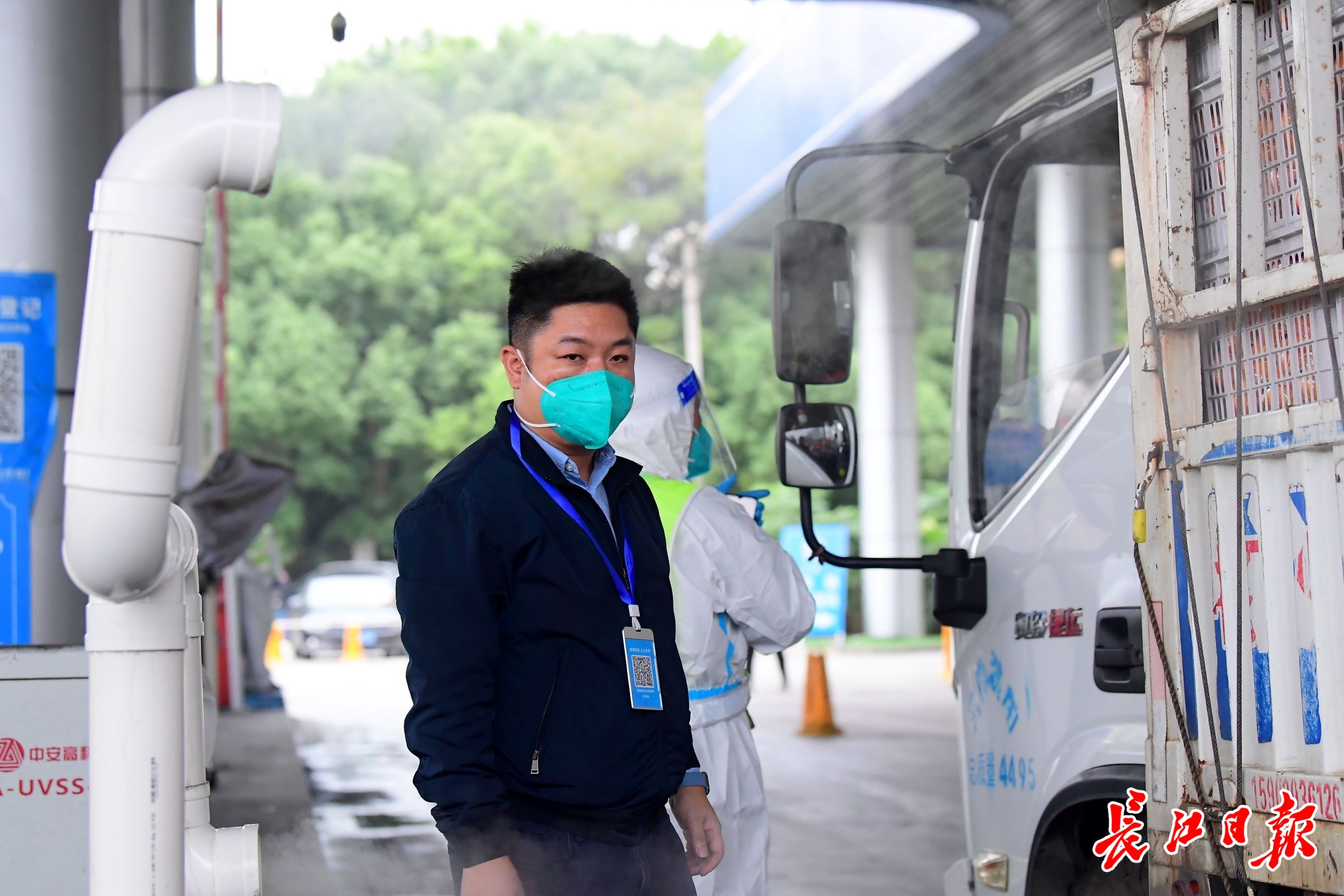 下午4时,长江日报记者来到青郑高速武昌收费站,看见负责该高速卡口检疫检测的洪山区城市管理执法局(交通运输局)副局长蔡庆忙碌的身影,他先在收费站查看设在此处的分屏器,观察每一台下高速的车辆信息,然后又到专用通道查看车辆和人员核验。