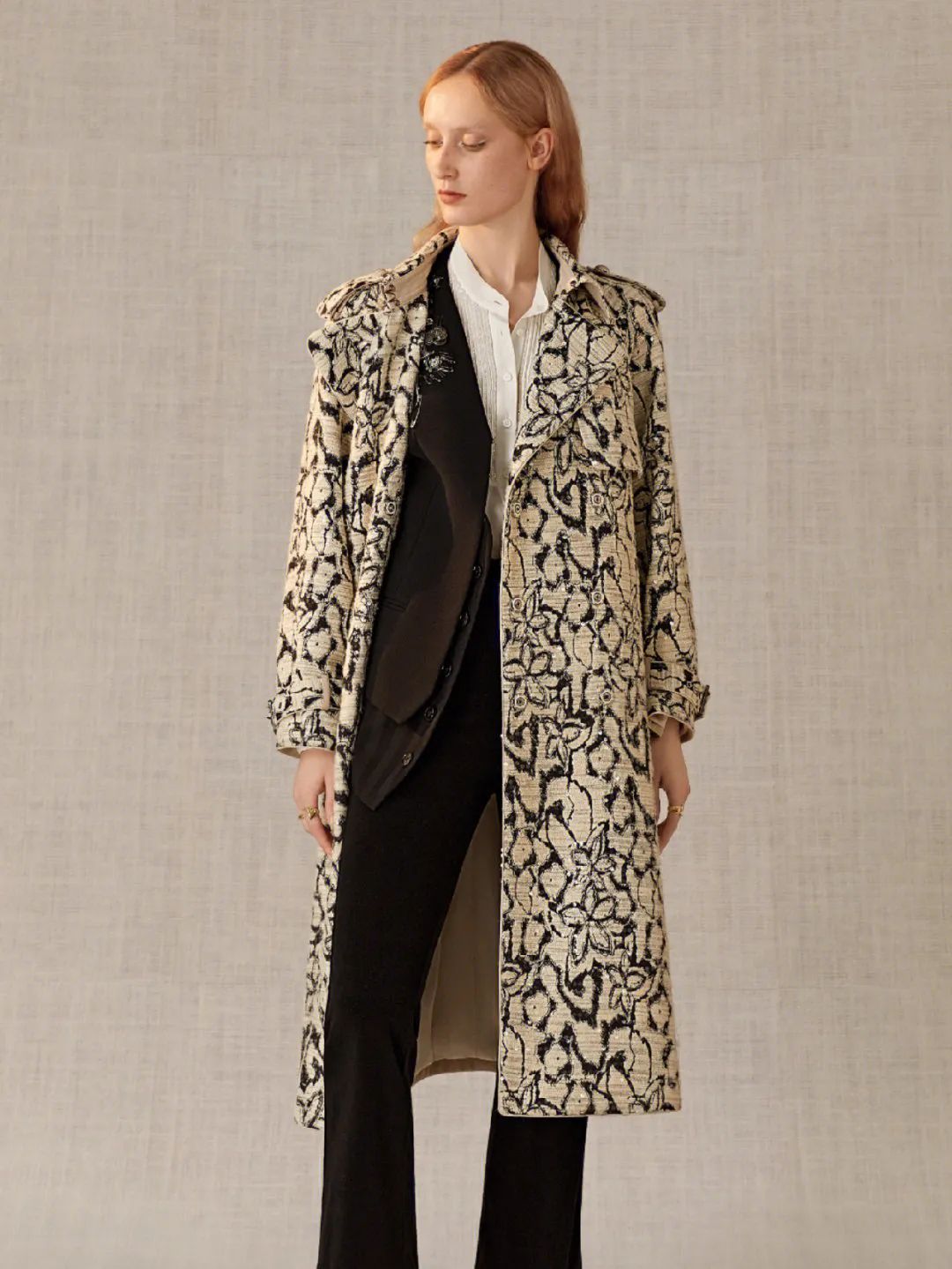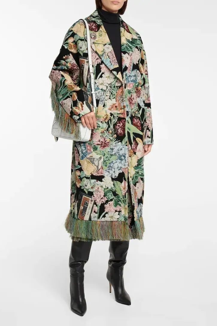 秋冬大衣上的花卉图案,