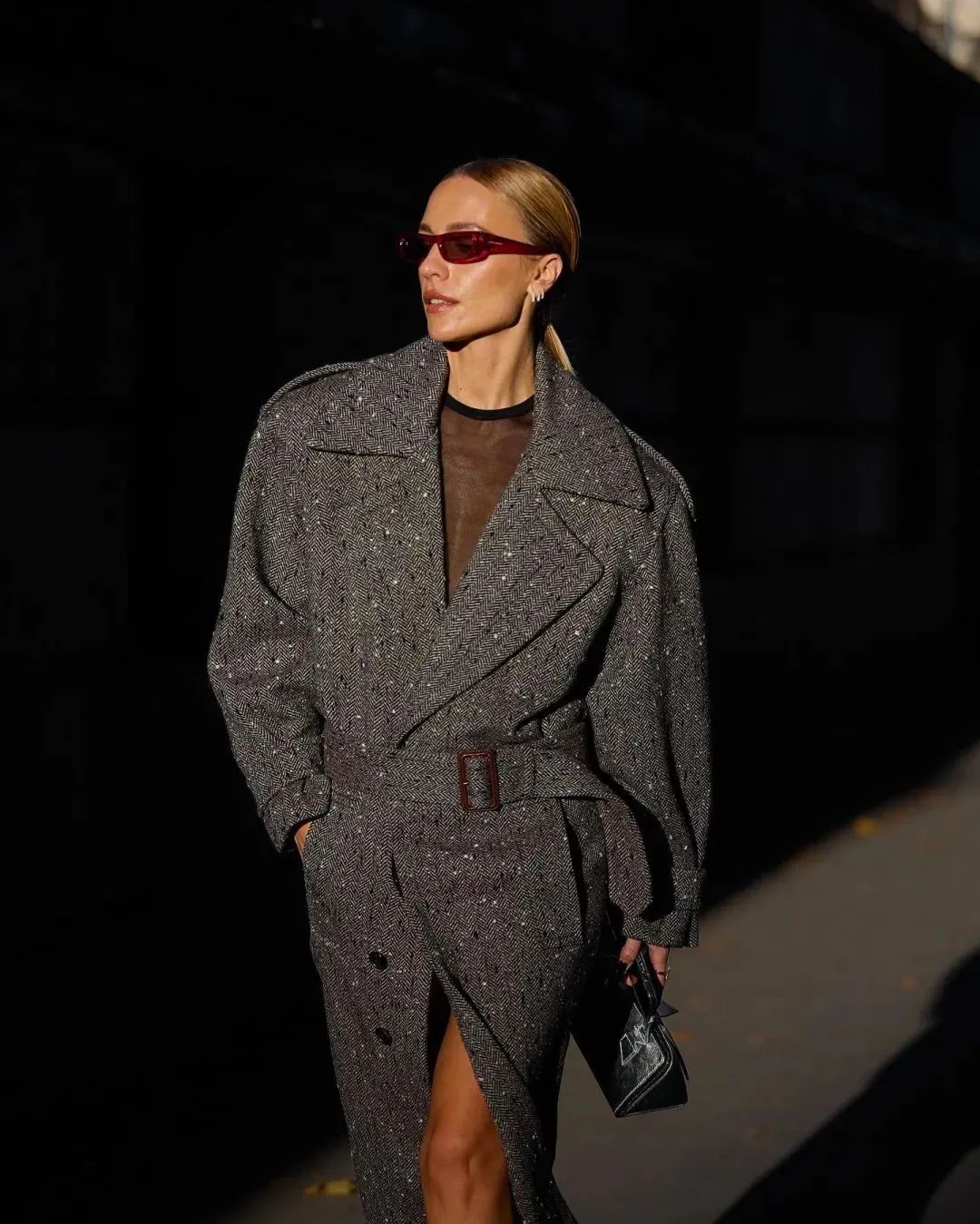让及地大衣显得不再冗长。