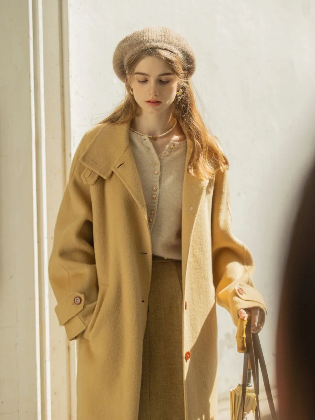 ——大衣收腰的弧度。