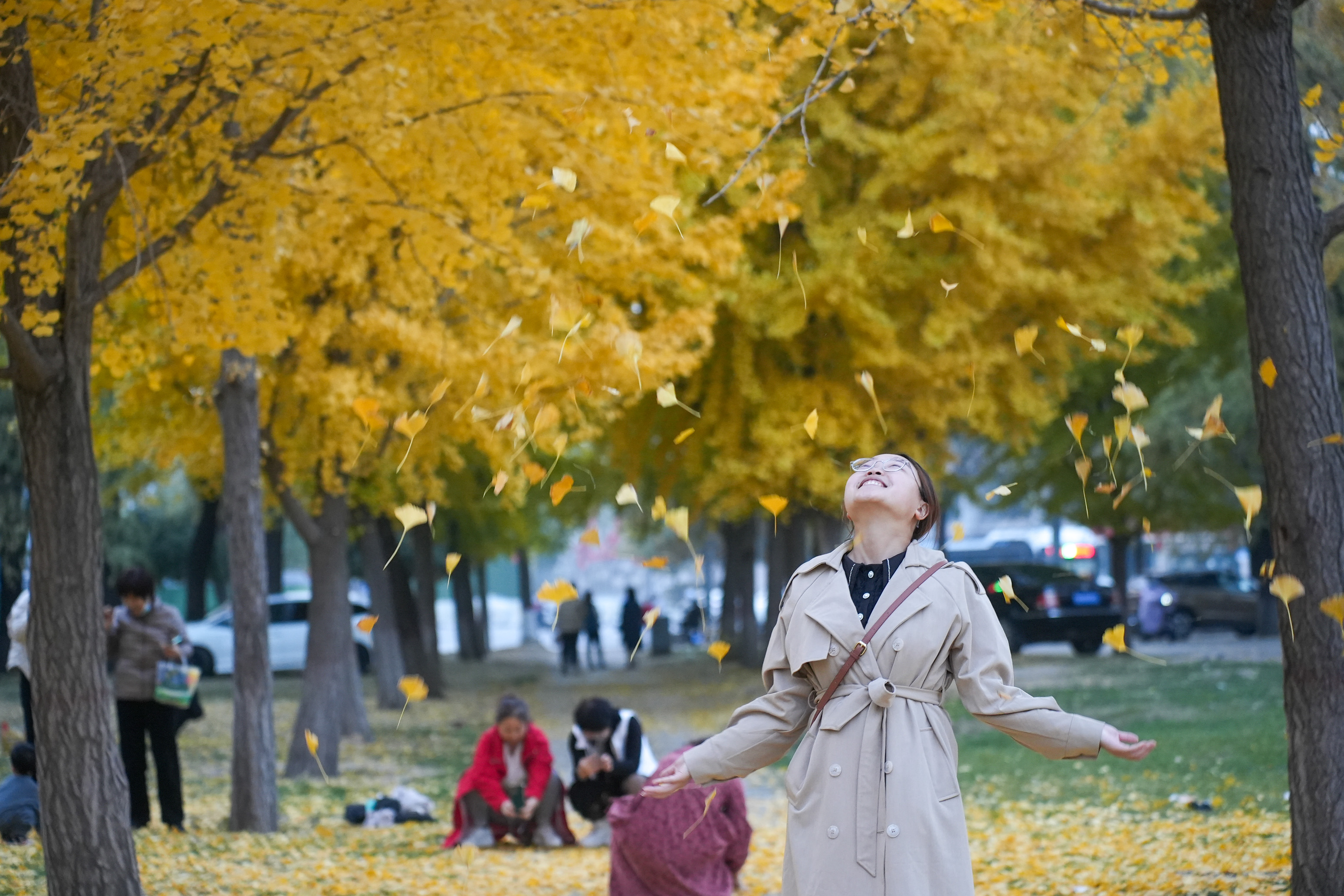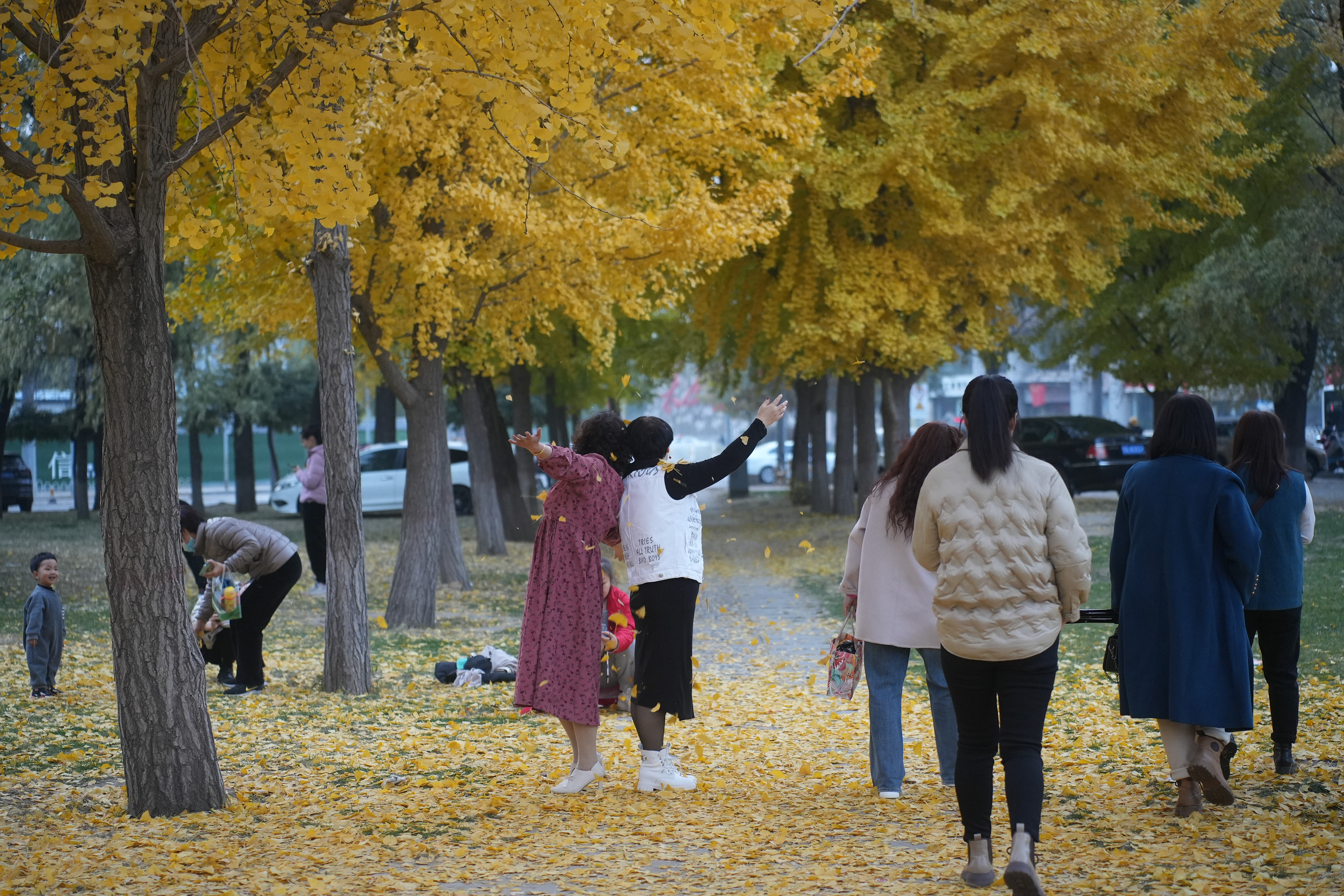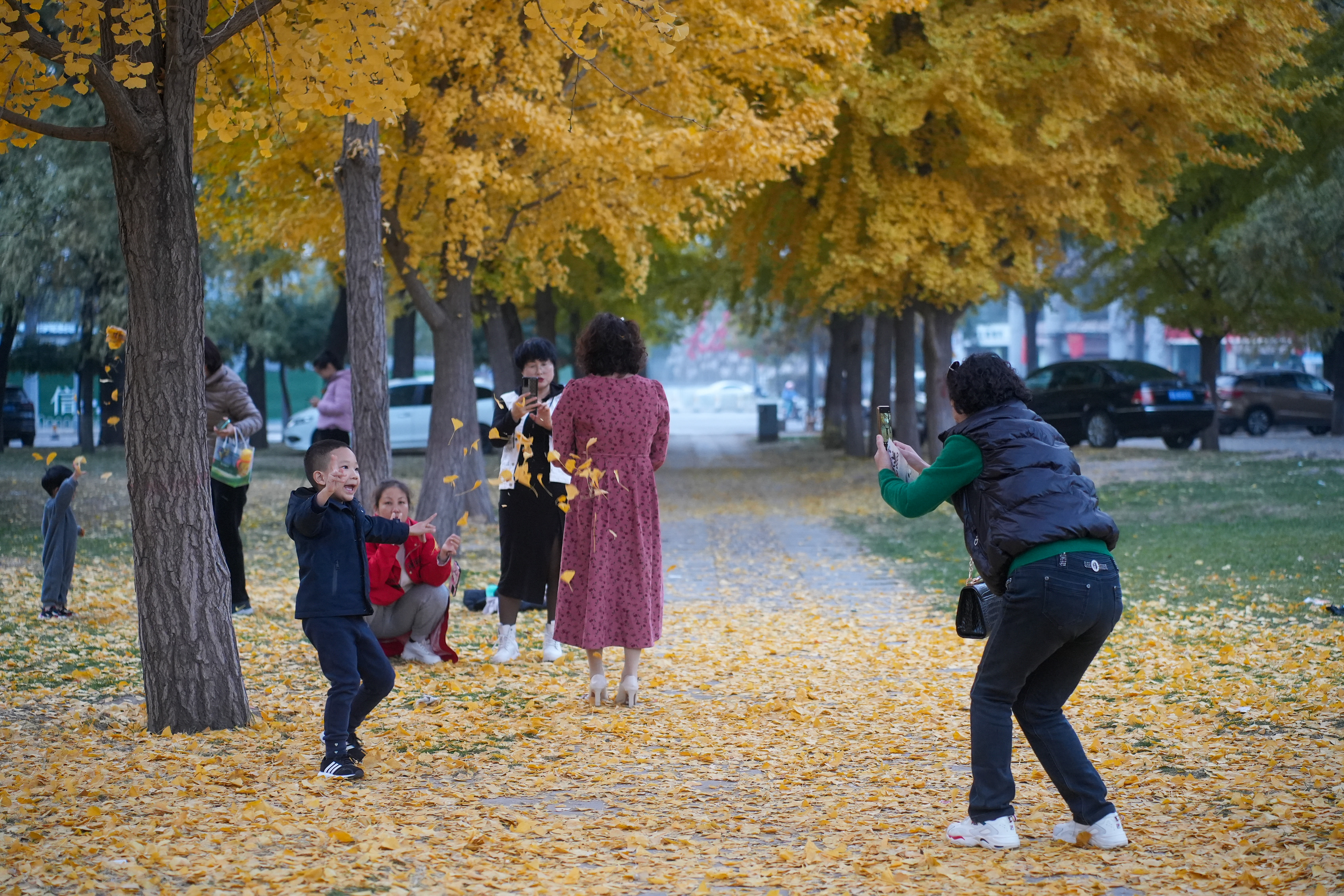 10月28日,太原市胜利桥西一公园内,市民在深秋美景中赏景、拍照。深秋时节,省城各处沉浸在一片色彩叠加的“画布”之上,秋日美景让人沉醉。(山西日报记者 阮洋摄)