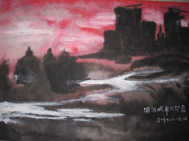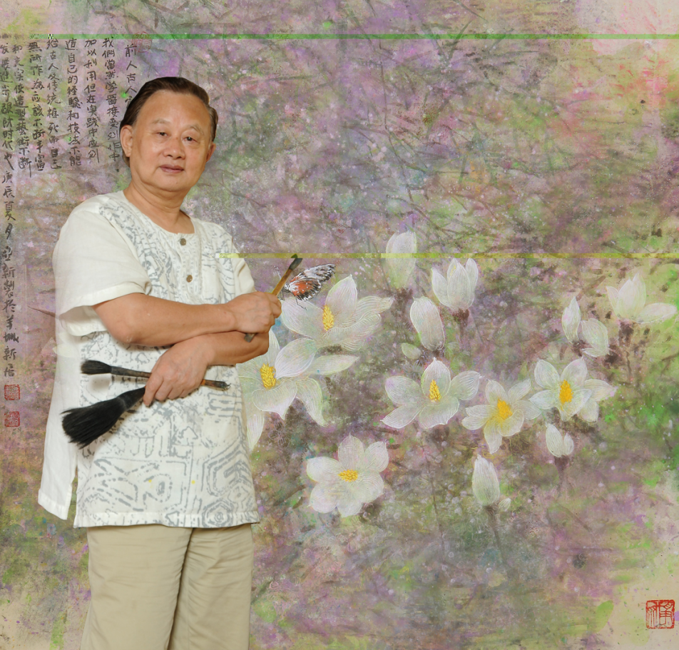 我的一生,在艺术上对我影响最大的几位人物中,刘海粟大师教会了我大胆泼墨,我开始悟到水是中国绘画“神”的本质,有水才有血肉,有水才能有墨韵和彩韵;关良老师教会了我大胆落笔细细收拾,让我悟通了中国绘画的神韵,是要在有意与无意之间,在有形与无形之间;而程及大师则教会了我要懂得“以水攻水”,那就是“你中有我,我中有你”,浑然一体的交融之道。