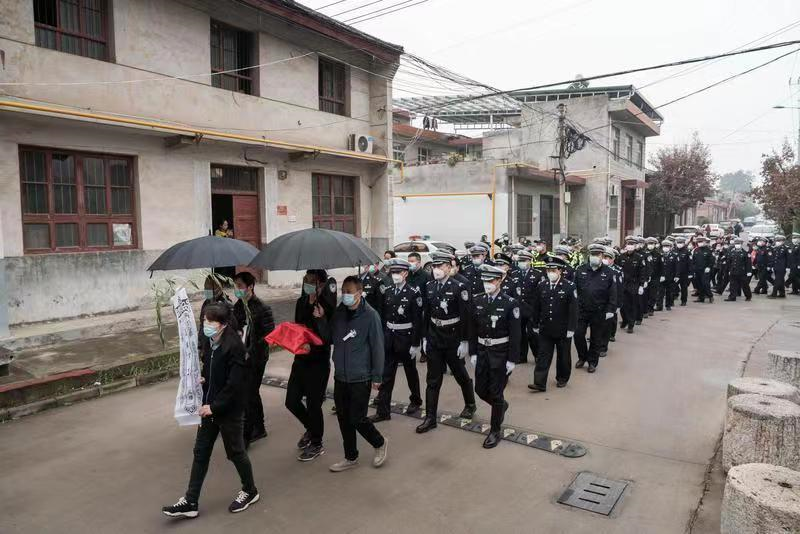 告别仪式后,西安市公安局交警支队以最高规格仪式,将姜强同志的骨灰送回了位于鄠邑区吕公寨村的家中。