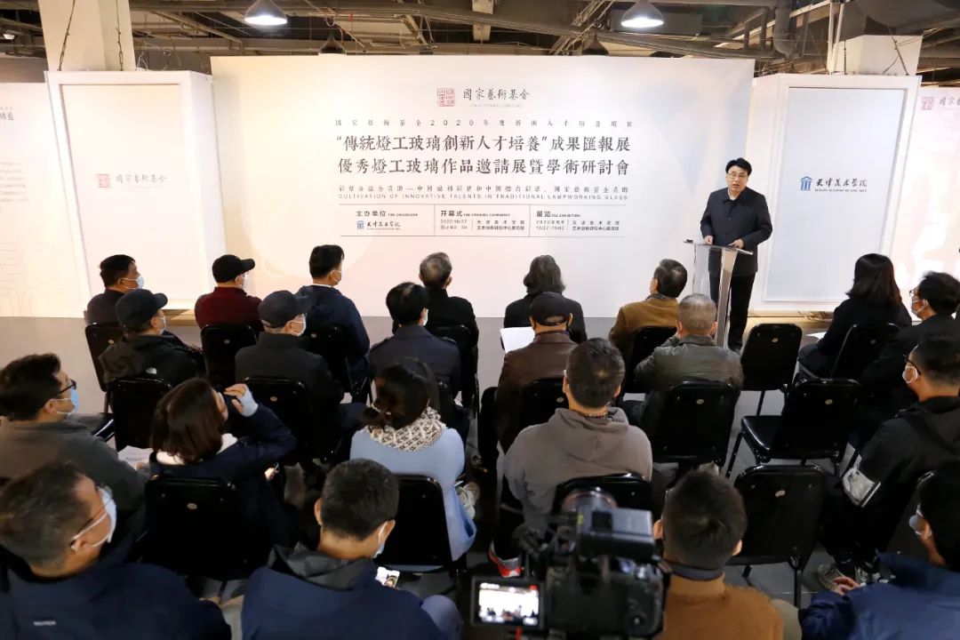 天津美术学院院长贾广健在致辞中表示,此次人才培养项目不仅聚集了我校最优的教学资源,同时也邀请到来自中央美术学院、清华美术学院、中国美术学院等友校的众多专家学者,可以说是我国目前为止高水平的一次灯工玻璃艺术教育实践。展览回顾了我国灯工玻璃艺术的发展,更让我们看到了一大批具有新时代特征的优秀灯工玻璃艺术作品。这一系列活动将集中展示该项目取得的成就,同时也是我们向国家艺术基金、向关心支持中国玻璃艺术事业发展的同仁交出的一份答卷。