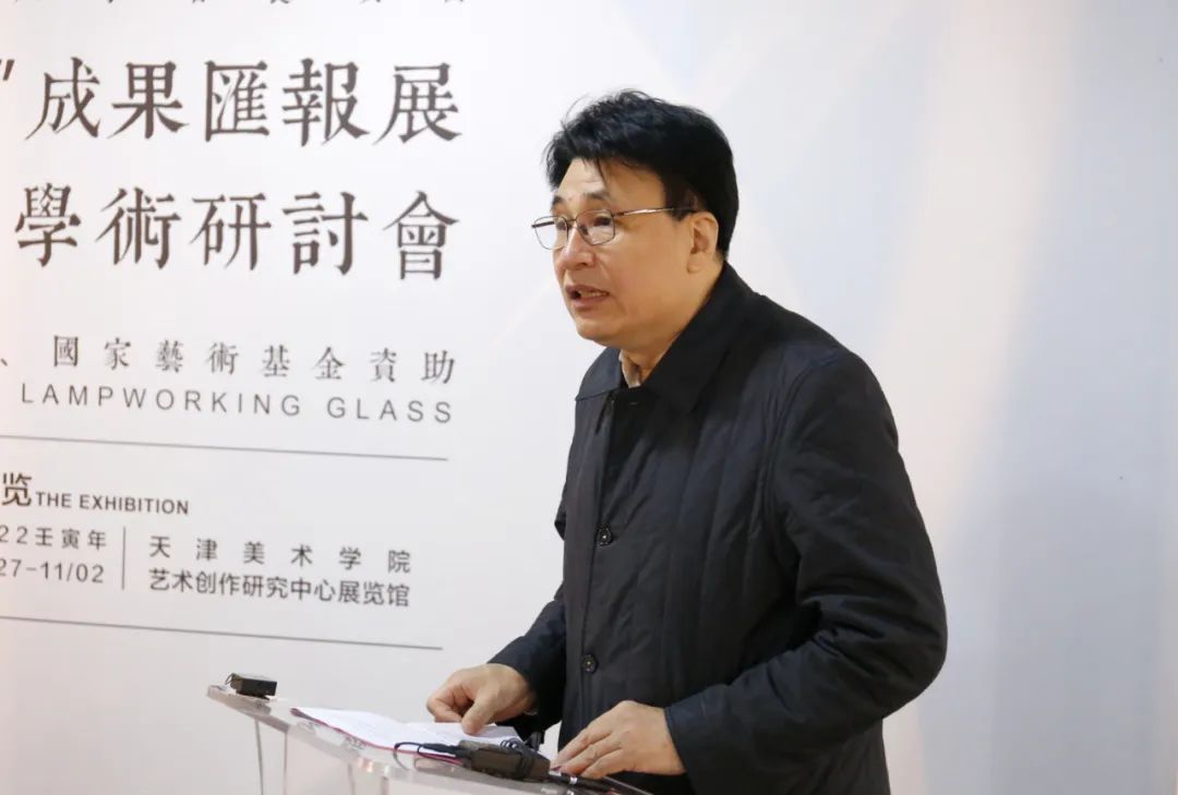 视觉设计与手工艺术学院院长薛明在致辞中讲到,工艺美术系是天津美术学院开设较早的专业之一,至今已有40多年的历史,目前是国家级一流学科建设点。学院的玻璃艺术方向于2015年建立,一直致力于培养学生全面发展,强化基础教学,强调理论与实践相结合,艺术与科技相结合,课程教学与社会实践相结合,此次国家艺术基金项目的实施与我们校内的教学相互促进,在教学内容、教授方式上为校内教学积累了经验、提供了参考,为我们的学科建设增加了助力。