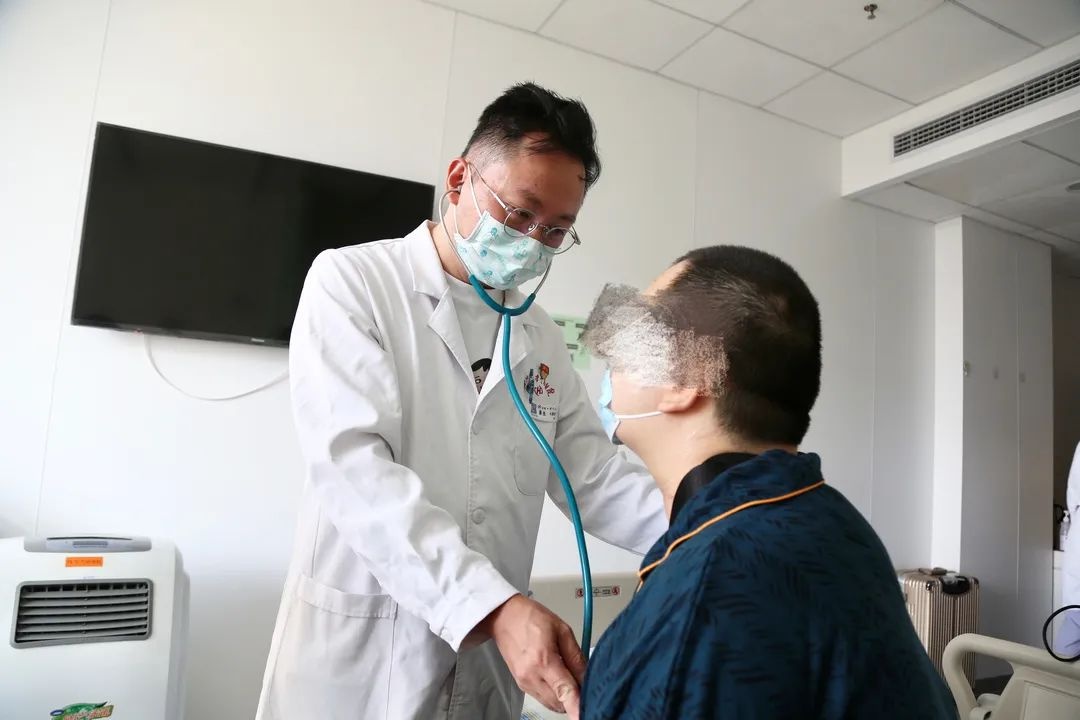▲心脏移植中心主任蔡杰副主任医师查看患者病情