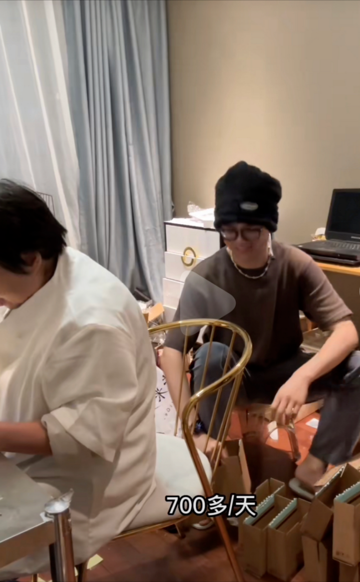 后来,因为他自己在卖货,就找了一个专门负责包快递的阿姨。