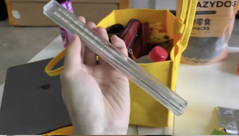 阿姨一脸淡定地从包里掏出了一双自带的筷子。