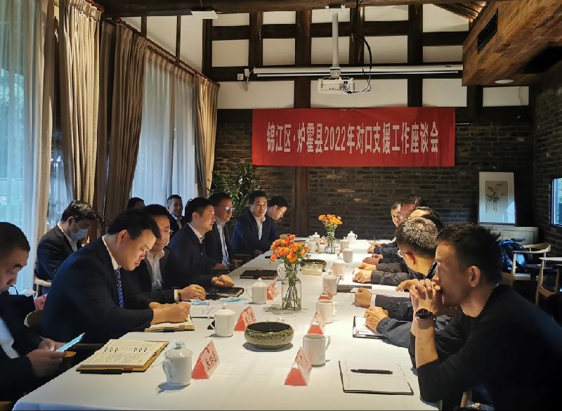 2022年10月26日,锦江区·炉霍县2022年对口支援工作对接会在锦江区召开,会议对接会商了2022年对口支援重点工作及下一步工作计划,区委副书记、区长缪晓波,区委常委、区委统战部部长唐勇,炉霍县委副书记、县长邓建光,县委常委、常务副县长李峰参加会议。