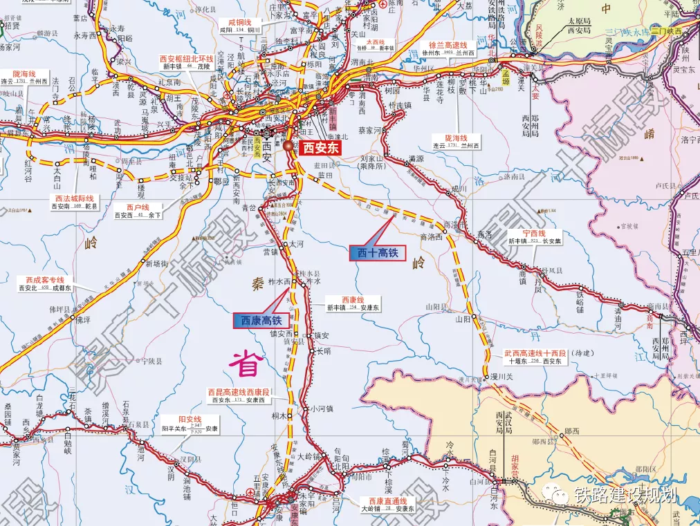 西安至安康高速铁路是国家中长期铁路网规划“八纵八横”高铁通道中包(银)海通道、京昆通道的重要组成部分,新建正线全长约171公里,设计时速350公里。线路规划自西安东站南端引出,跨越浐河,穿越秦岭,经过柞水、镇安、旬阳,接入规划的安康西站,计划建设工期5年。设西安东、太河、柞水西、镇安西、桐木、安康西6个车站。