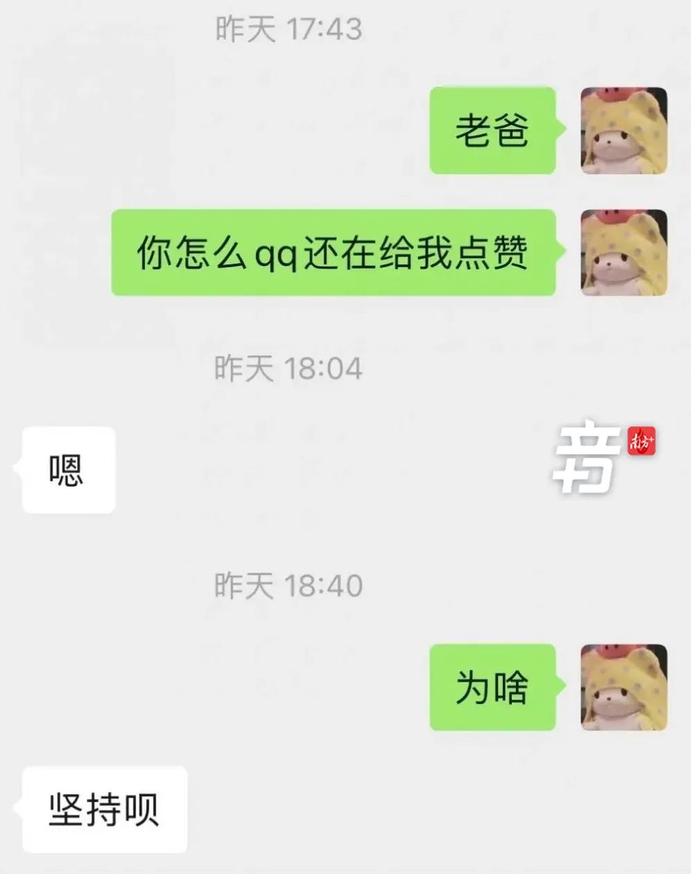 当她问起父亲,“爸,你怎么qq还在给我点赞?”
